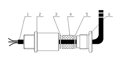 其中:1—同軸電纜 2——引入端子 3——上墊片 4—密封件 5——下墊片 6——壓緊端子